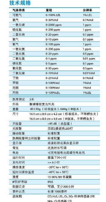 可同時檢測六種氣體;